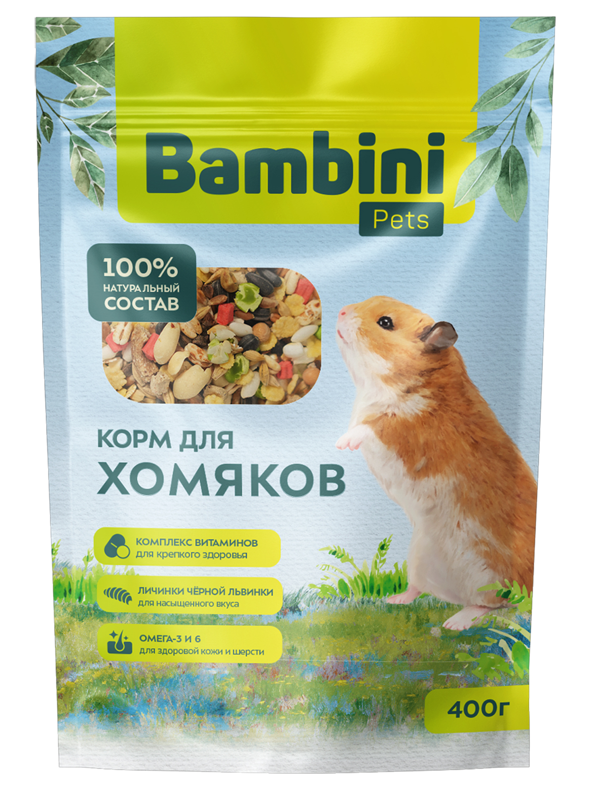 Сбалансированный повседневный корм для хомяков создан с заботой о ваших малышах. Наши специалисты подобрали ингредиенты с учётом видовых особенностей питания хомяков. В состав рациона входит комплекс витаминов для крепкого здоровья, личинки чёрной львинки для насыщенного вкуса, омега-3 и 6 для здоровой кожи и шерсти. Корм Bambini Pets не только вкусный, но и полезный.