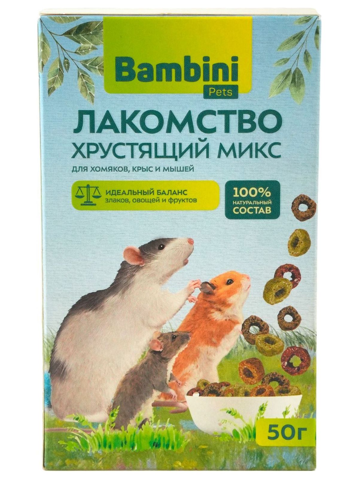 Лакомство Bambini Pets Хрустящий микс для крыс и хомячков, 50 г.