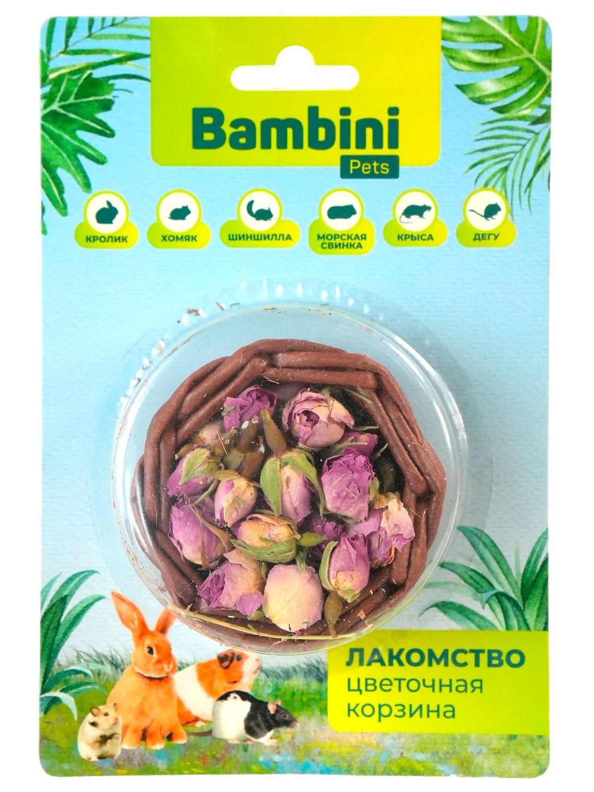 Лакомство Bambini Pets Корзина с высушенными цветками розы для грызунов и кроликов, 10 г.