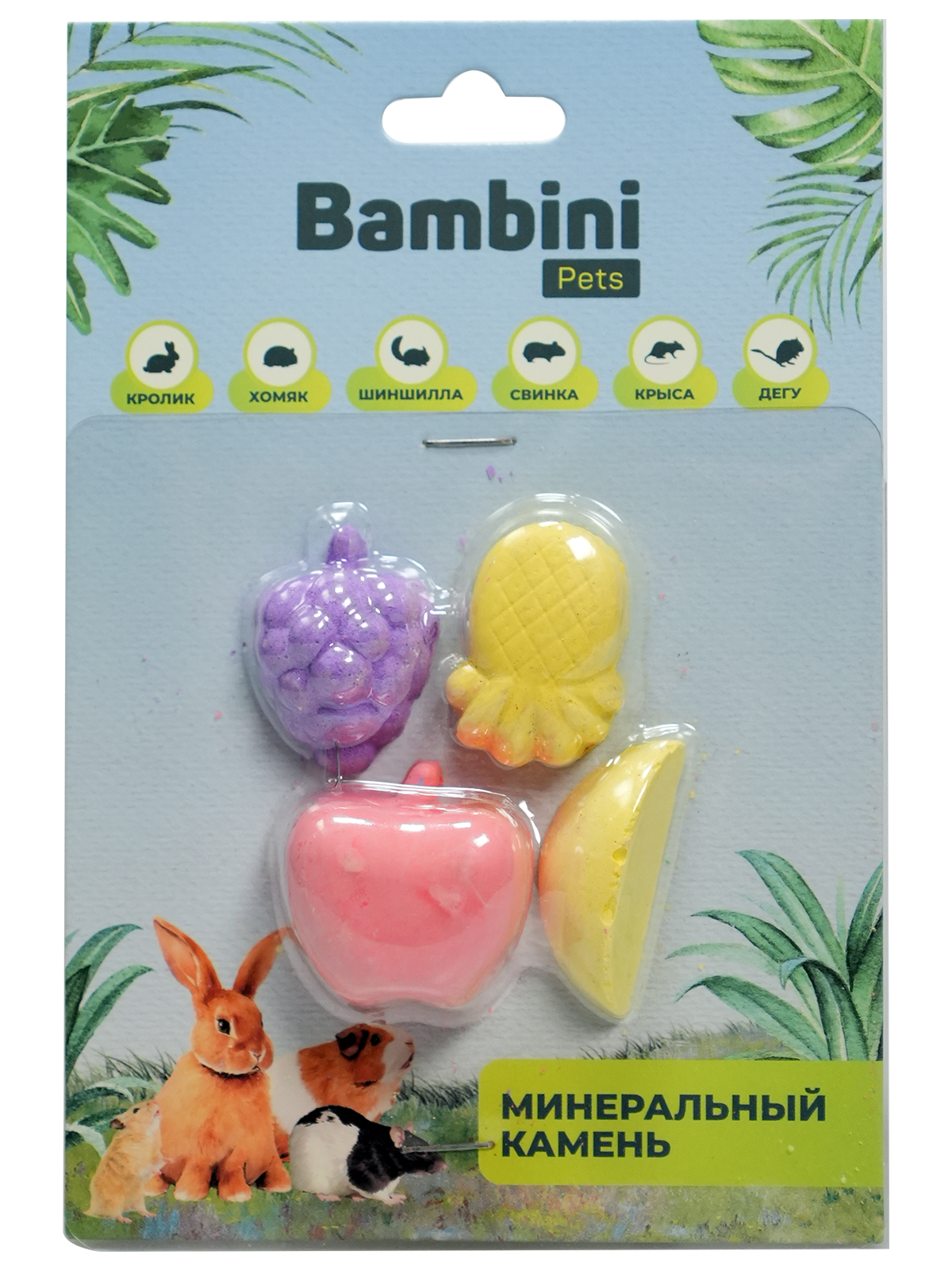 Минеральный камень Bambini Pets для грызунов "Фрукты". Количество 4 шт