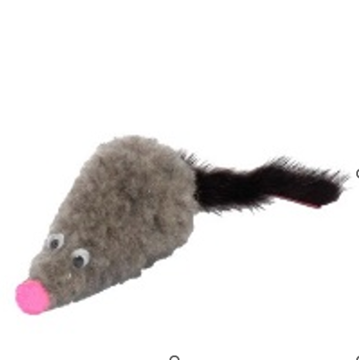 GoSi Игрушка для кошек "Мышь с кошачьей мятой, хвост из натуральной норки", серая 6см