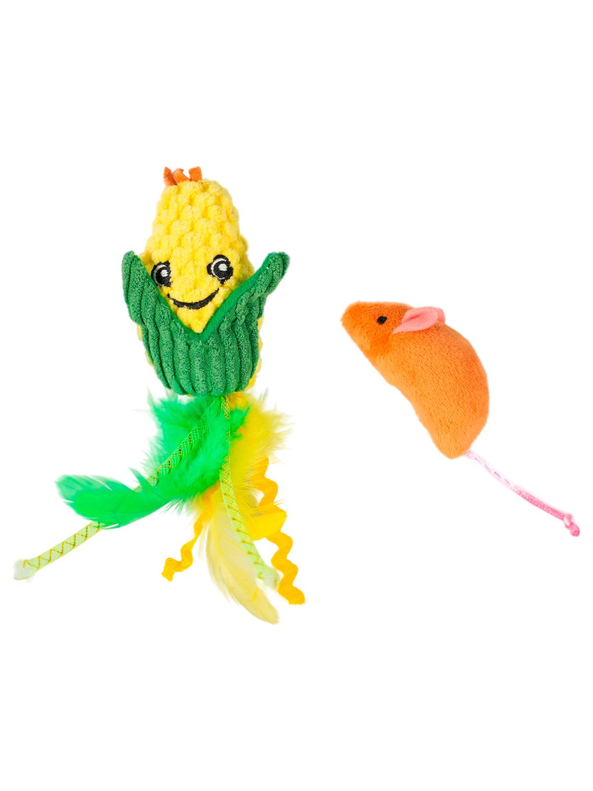 Mr.Kranch Игрушка для кошек Кукурузка и Мышка плюшевая с кошачьей мятой и перышками 19 см желтая (35002)
