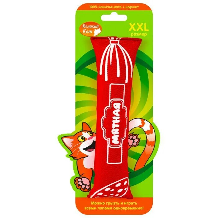 Великий Кот Игрушка для кошек мятная Колбаса с кошачьей мятой с шуршащим элементом 18см