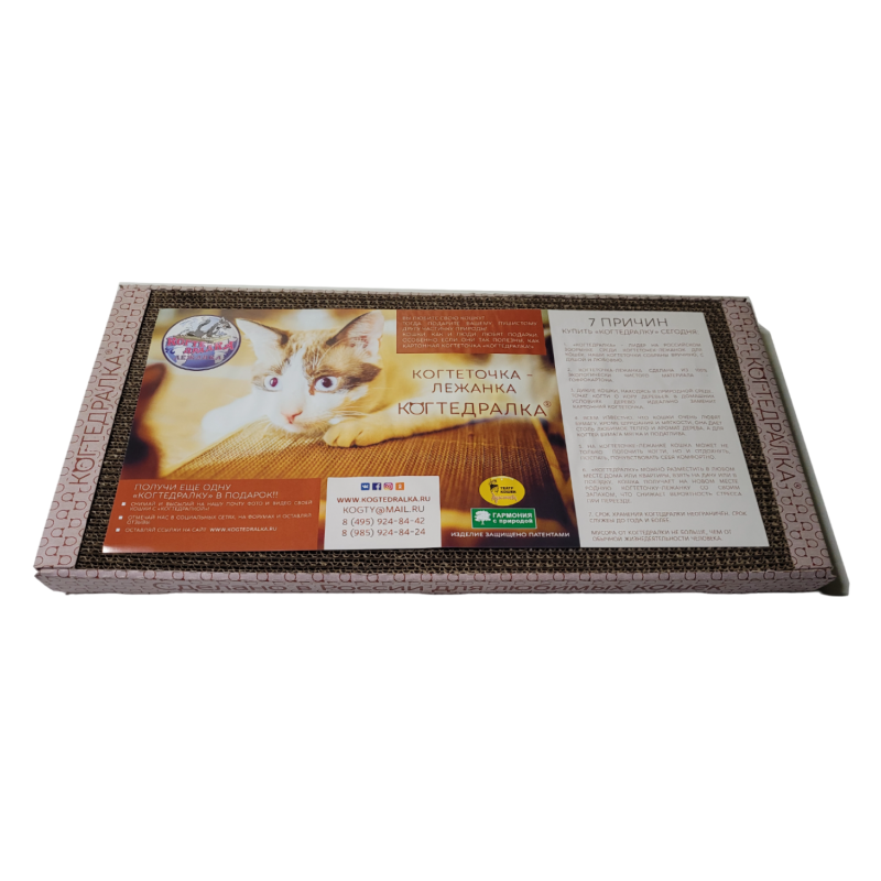 Картонная когтеточка для кошек, гофрокартон, Когтедралка , размер 50х24 см