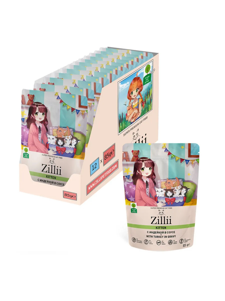 Zillii Влажный корм для котят с индейкой, в паучах 85