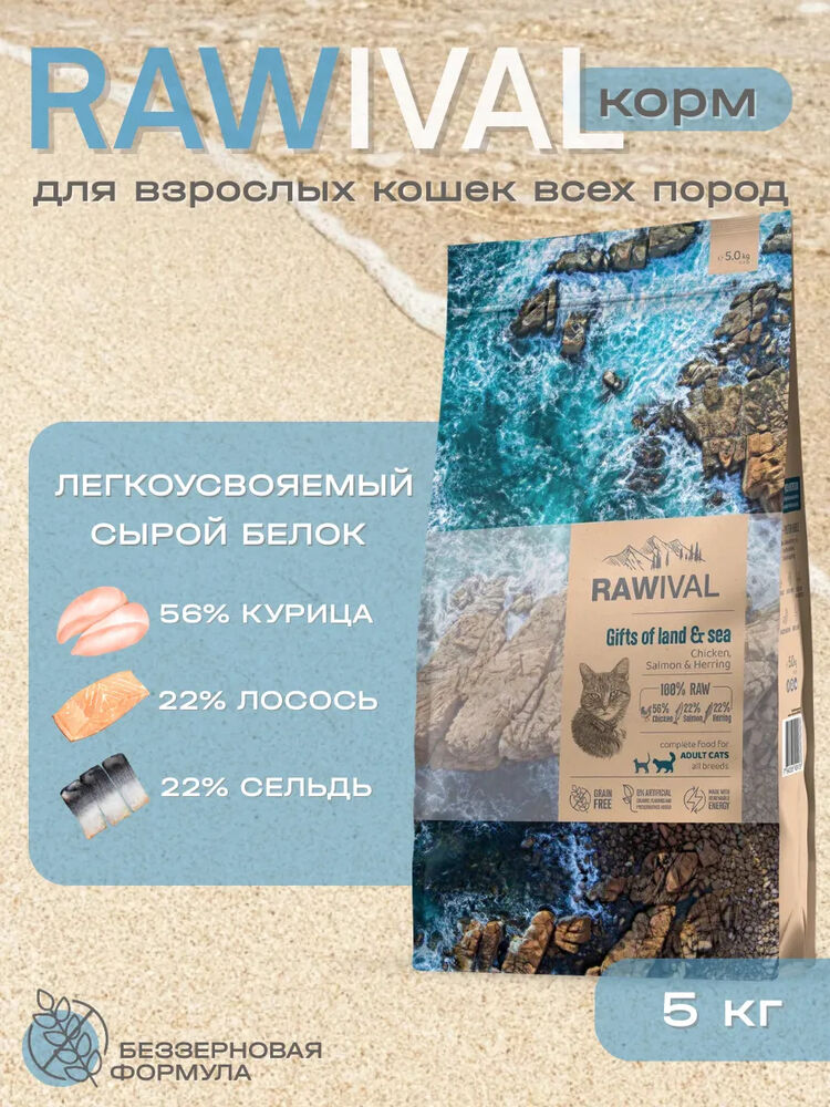 Rawival сухой корм для кошек с курицей и рыбой, 5 кг