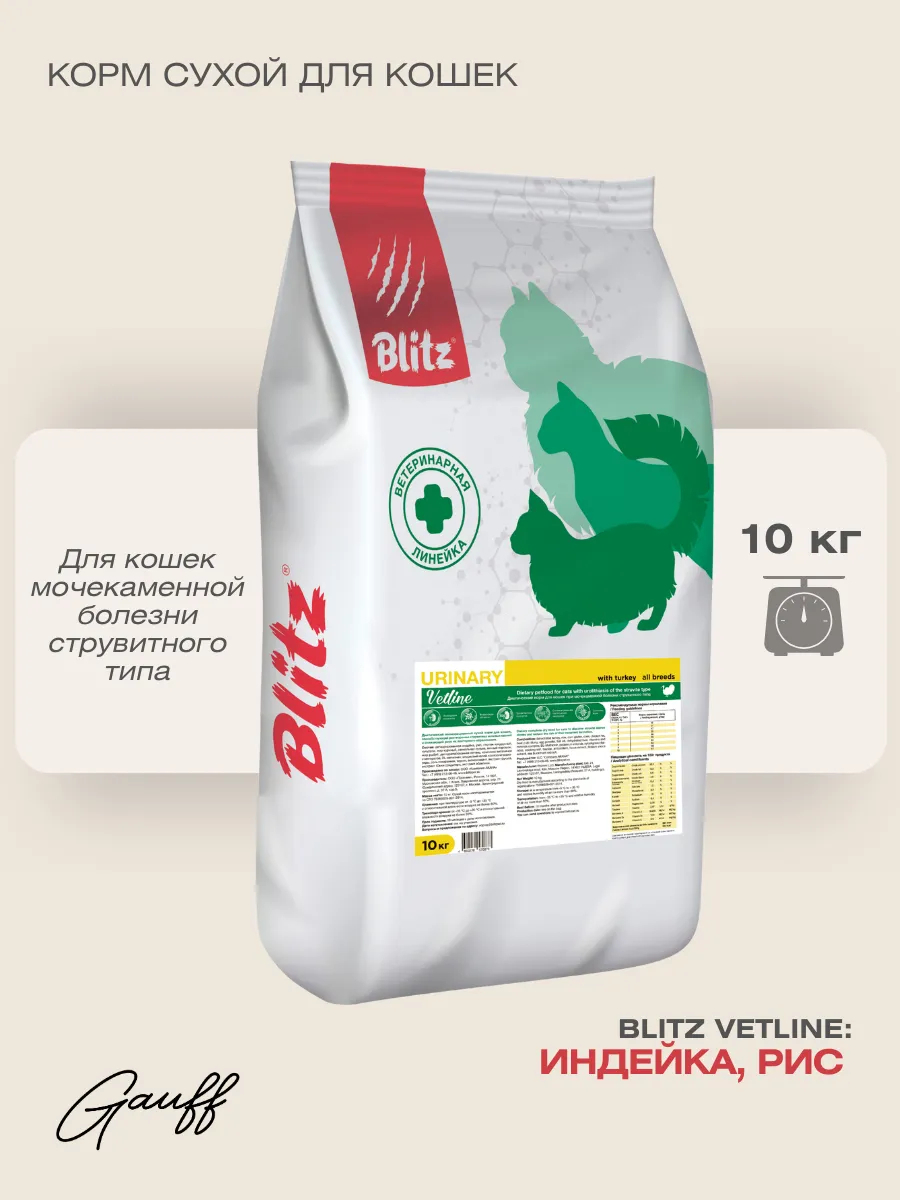 BLITZ Сухой корм для кошек при мочекаменной болезни 10 кг