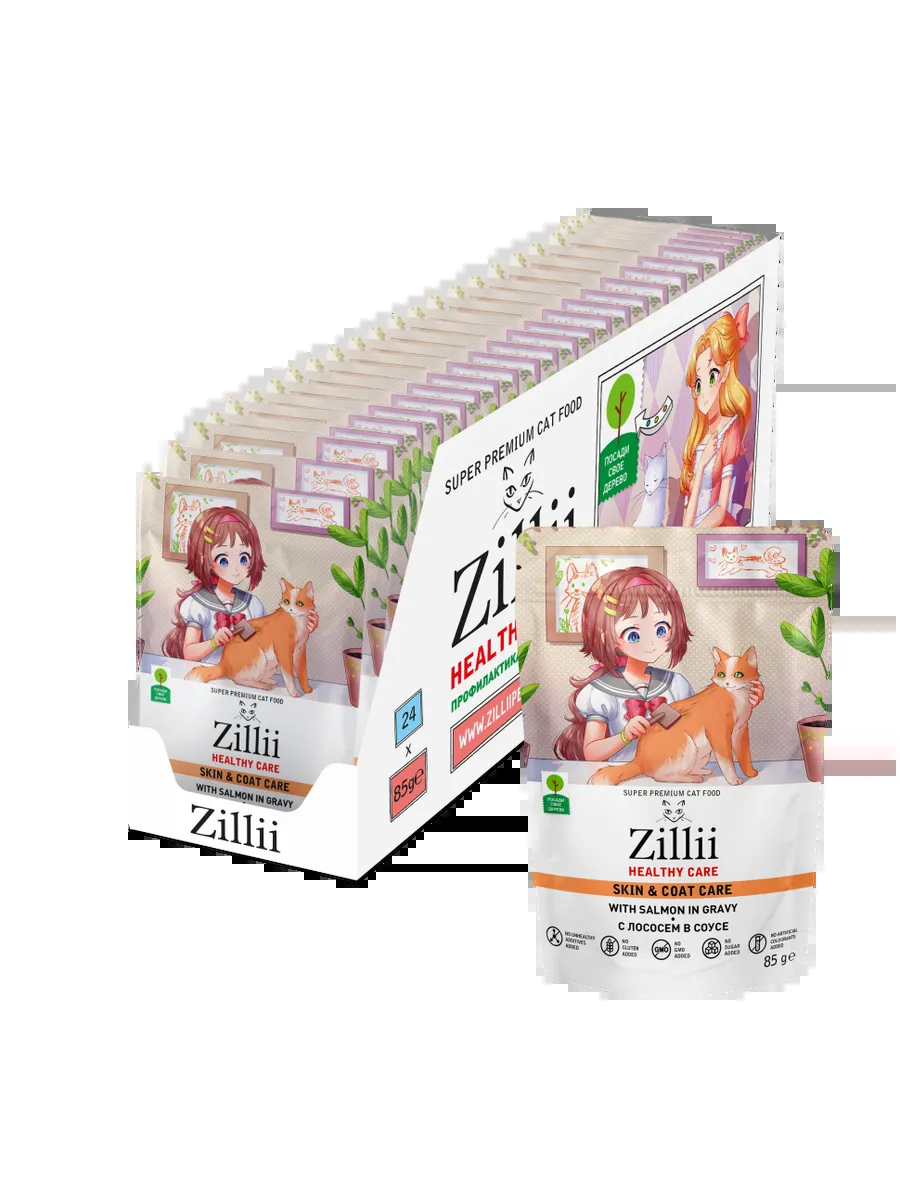 Zillii Влажный корм для кошек,для кожи и шерсти,лосось 85г