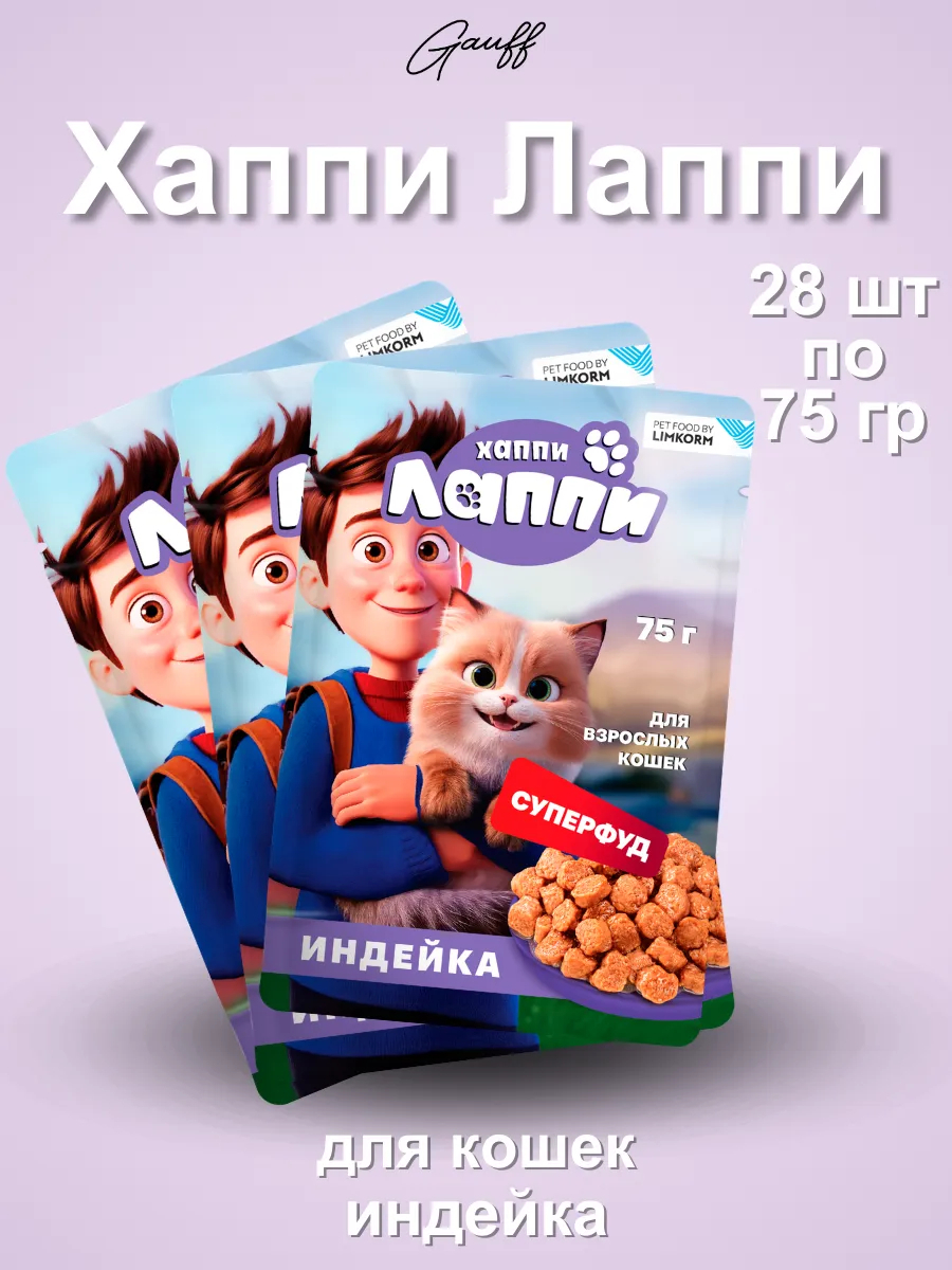 Хаппи Лаппи Влажный корм для взрослых кошек в соусе с индейкой 75г