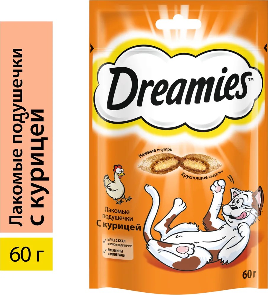 Лакомство Дримис для кошек с курицей – потрясающее хрустящее угощение для вашего домашнего питомца. Перед соблазнительным ароматом печенья и мясной начинкой не устоит ни одна кошка: животные с удовольствием воспринимают угощение в качестве дополнения к основному питанию. Натуральный состав богат полезными пищевыми элементами, утоляющими кошачьи потребности.