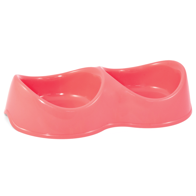 Gamma Миска пластиковая двойная "Бисквит", коралловая, 2*0,2л