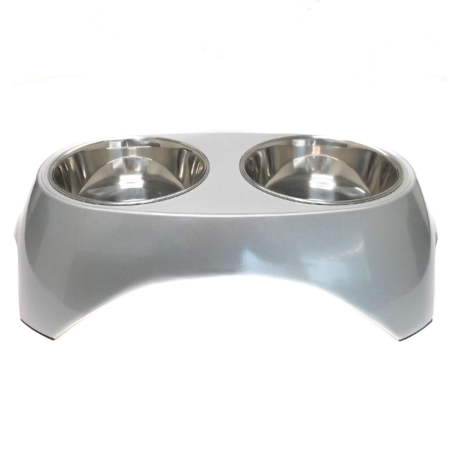 Миска SuperDesign на меламиновой подставке двойная Металлик 2х350 мл, белая
