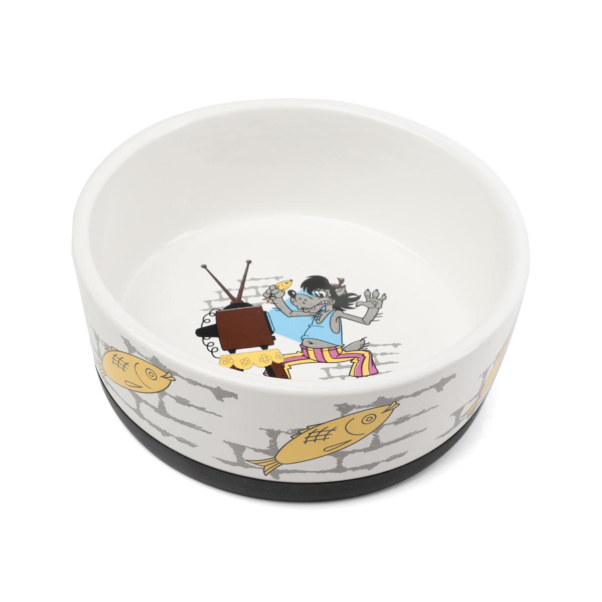 Triol СМФ НУ, ПОГОДИ! Миска для животных керамическая на резинке "Волк", 0.45л