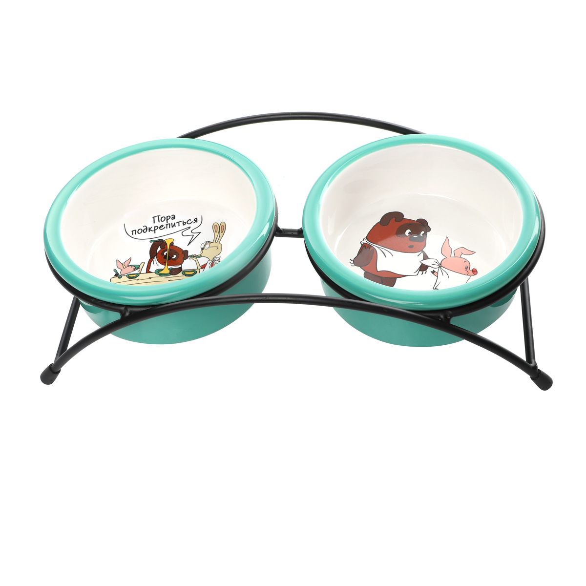 Triol СМФ ВИННИ ПУХ Миска для животных керамическая двойная на подставке "Пора подкрепиться!", 2*0.2