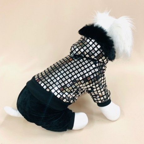 Комбинезон "Гламур" мех, зеркально-чёрный №10