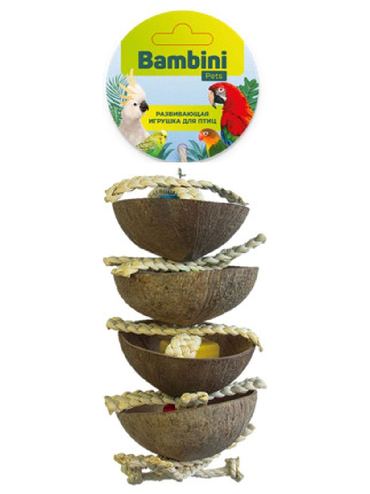 Игрушка Bambini Pets для средних и крупных попугаев "Четыре кокоса" 26 см