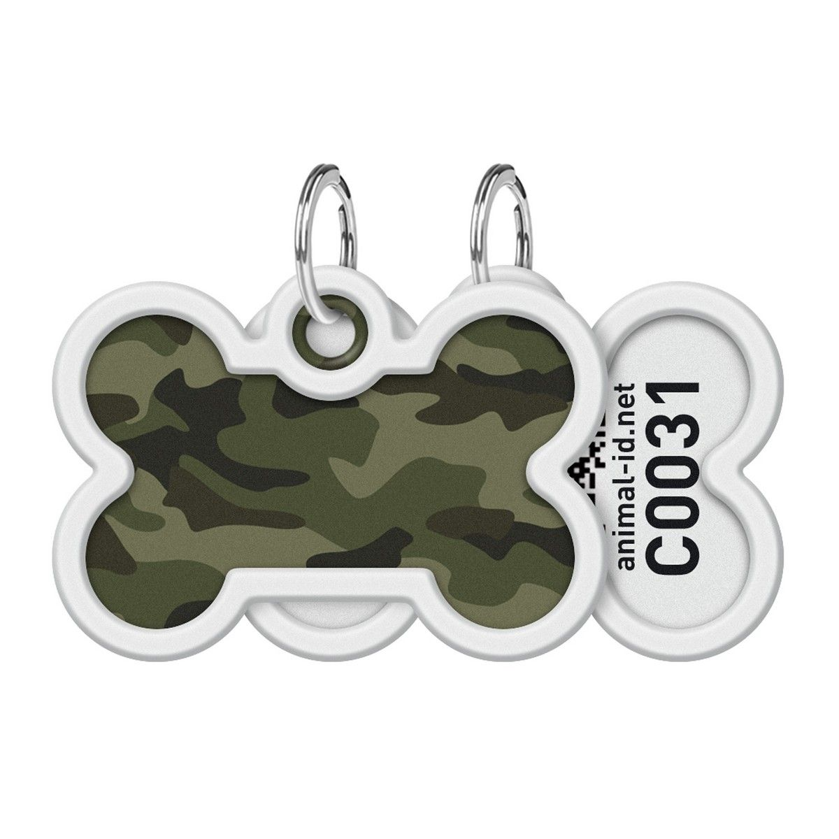 Адресник для собак и котов WAUDOG Smart ID "Камо зеленый", с QR-паспортом, металлический, кость