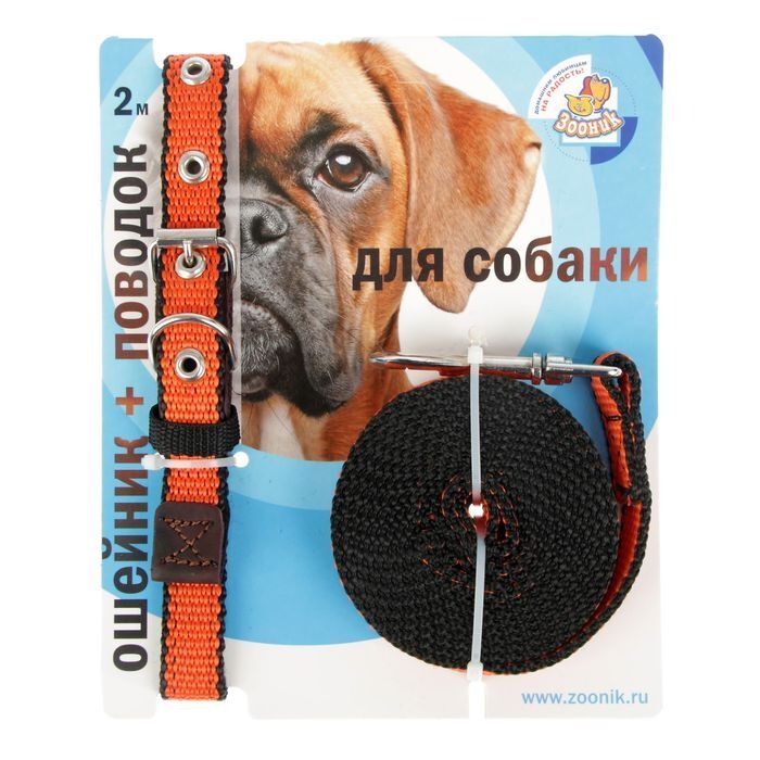 Зооник Комплект поводок 2м + ошейник 33-47см х 20мм на подкладке капроновая лента, на блистере