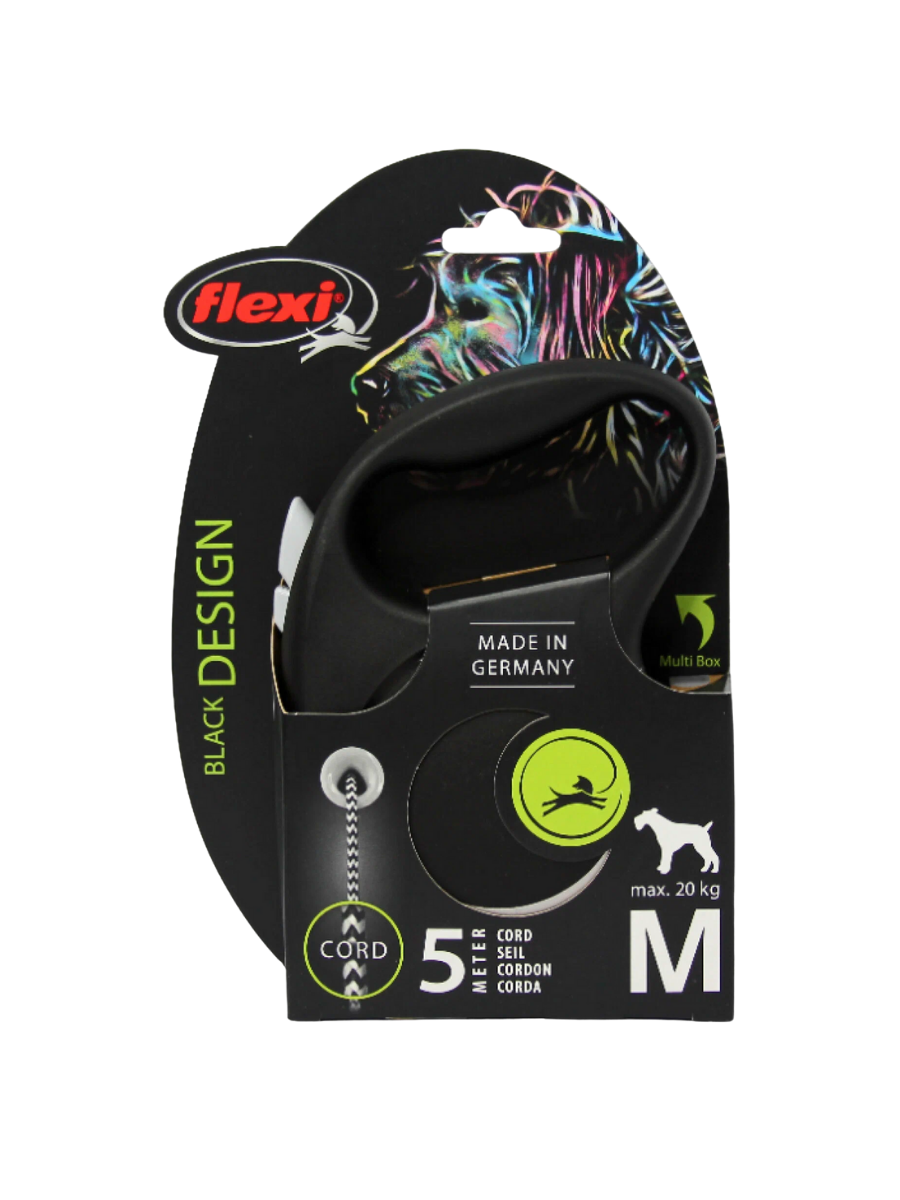 FLEXI BLACK DESIGN M Рулетка черная, серебряный дизайн, трос, 5 м до 20 кг