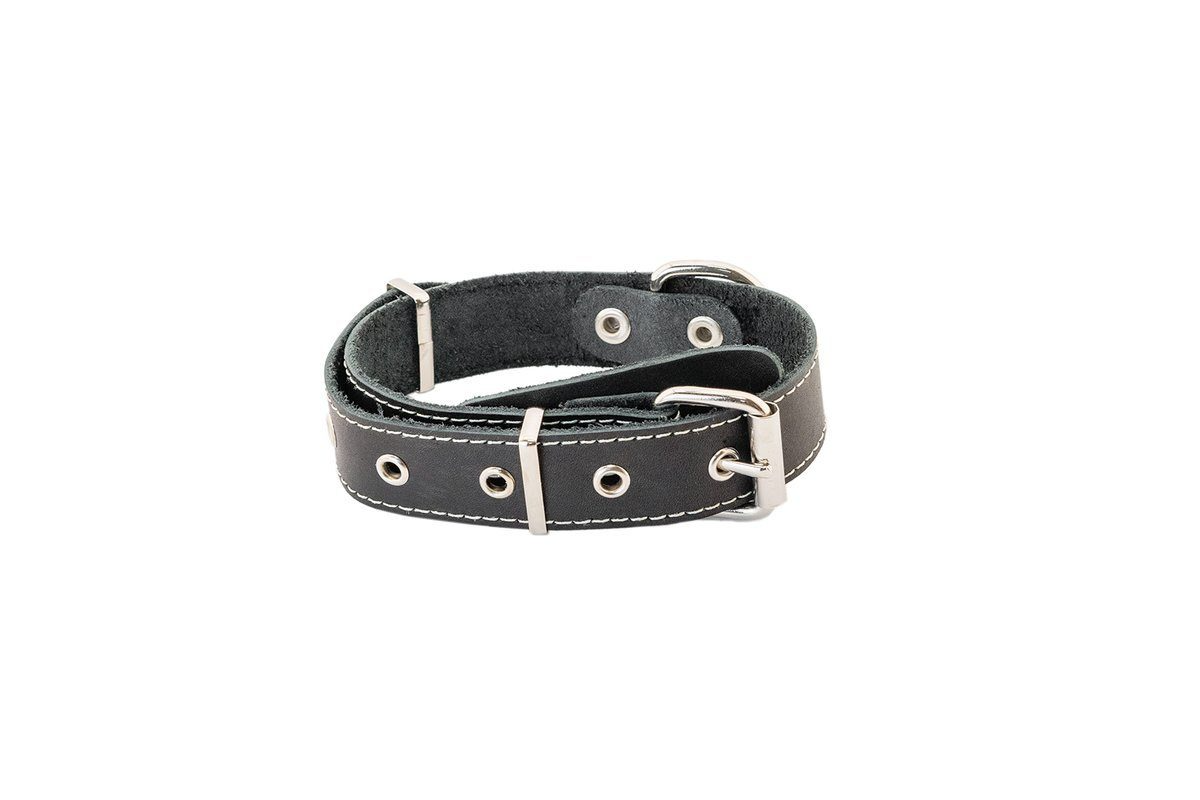 HOMEPET 30 мм 37-52 см ошейник кожаный с язычком на фетре простроченный черный