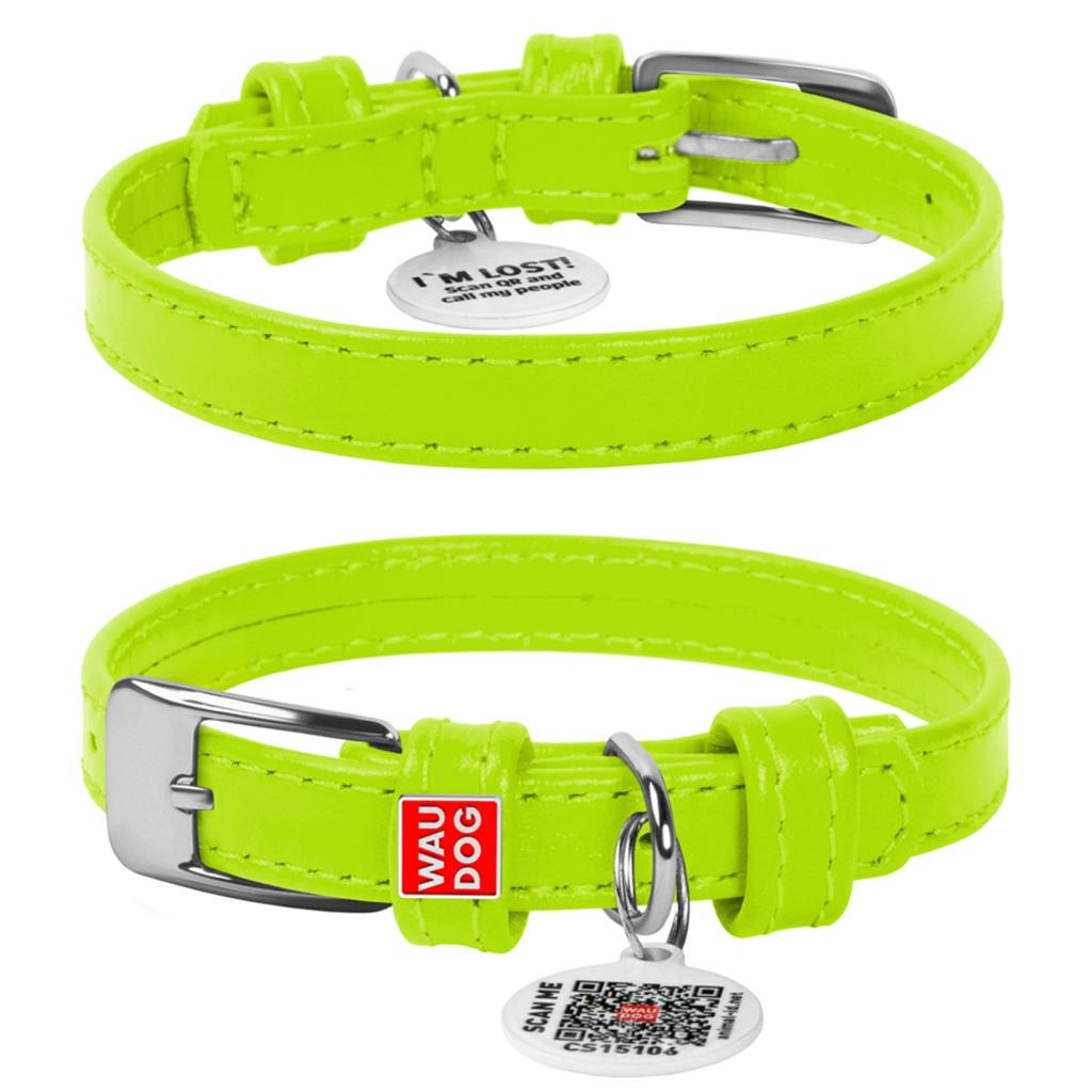 Ошейник для собак WAUDOG Classic, кожаный (M, салатовый, ширина 20мм, длина 30-39см)