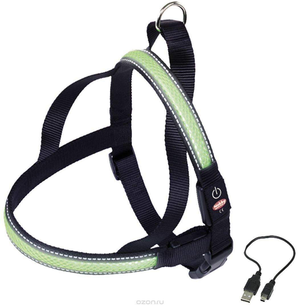 NOBBY Шлейка для собак светодиодная, на аккумуляторе, зеленая, S 50-66см