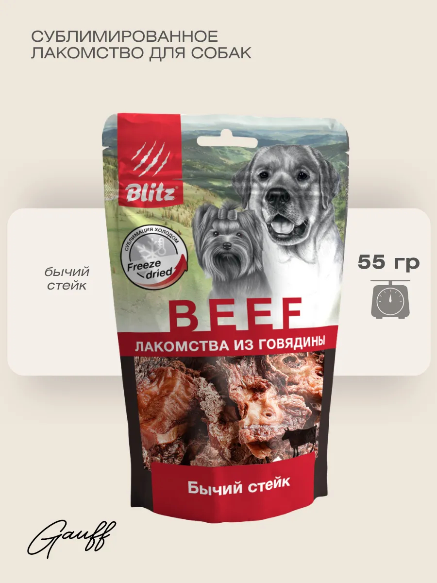 BLITZ Лакомство сублимированное для собак бычий стейк 55 г