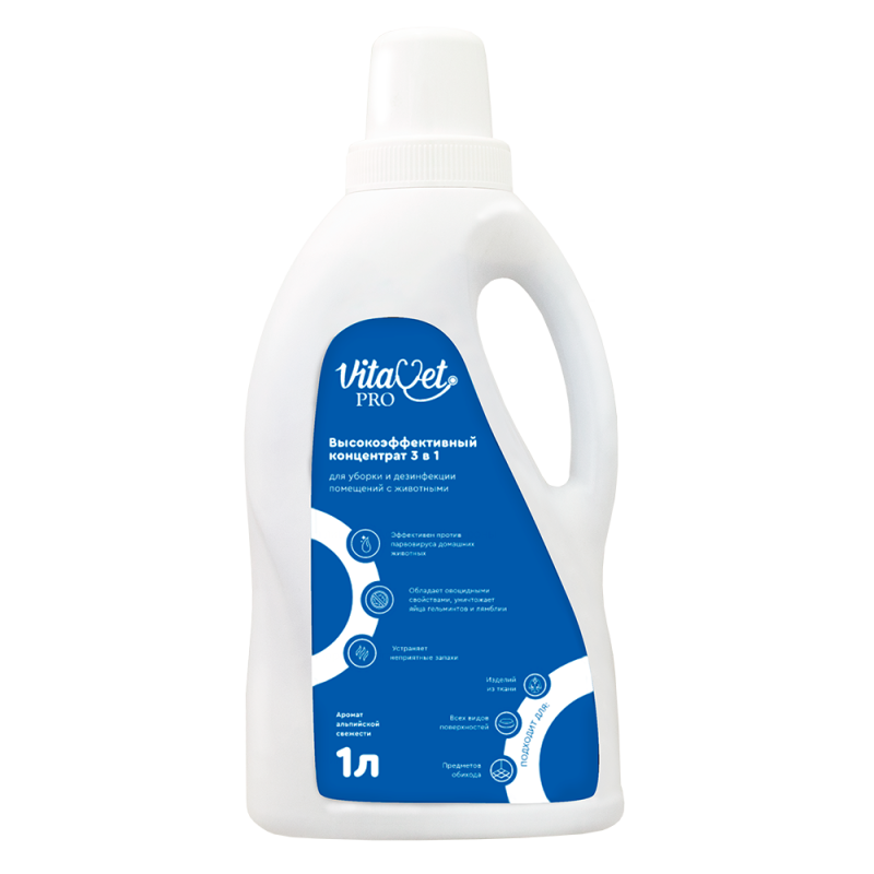 Концентрат VitaVet PRO 3в1 для дезинфекции и уборки помещений с животными, 1 л